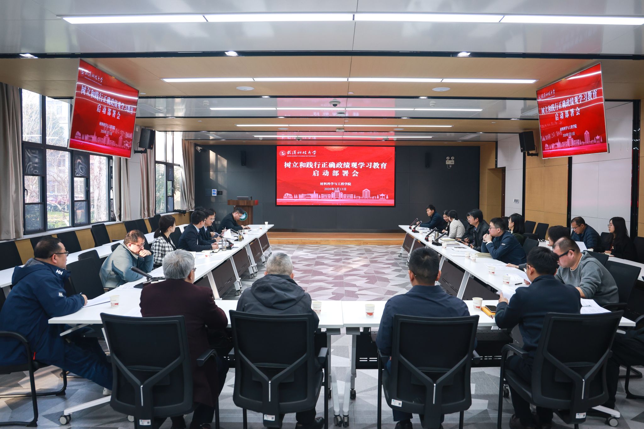 (通讯员郭家麒)3月13日,学院在青山校区图书馆一楼路演厅召开树立和践行正确政绩观学习教育启动部署会,学院领导班子成员、各支部书记及党员教师代表参加会议,党委书记刘帅作工作部署。