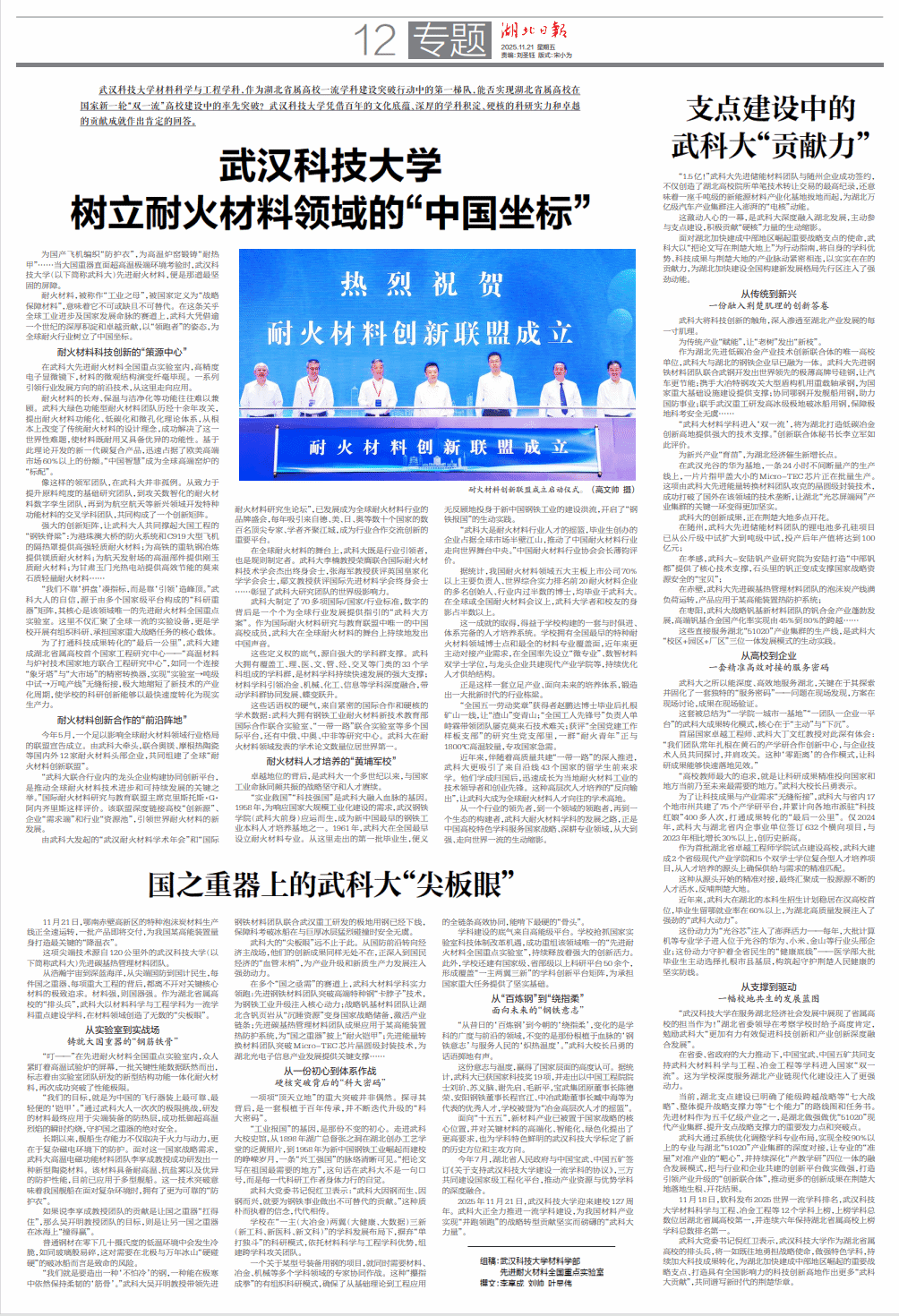 面对湖北加快建成中部地区崛起重要战略支点的使命,武科大以“把论文写在荆楚大地上”为行动指南,将自身的学科优势、科技成果与荆楚大地的产业脉动紧密相连,以实实在在的贡献力,为湖北加快建设全国构建新发展格局先行区注入了强劲动能。