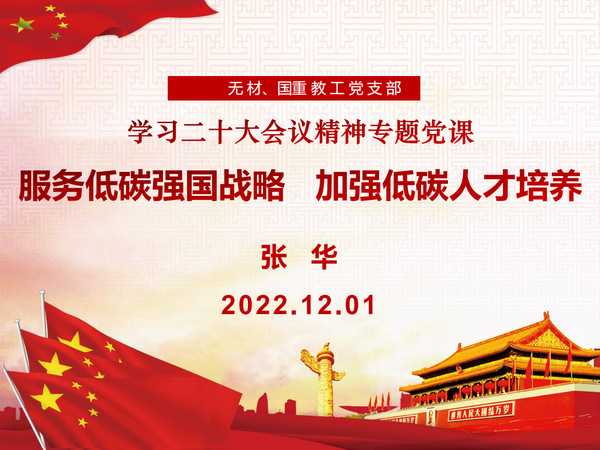 12月1日,湖北省课程思政教学名师、材冶学院张华教授以《服务低碳强国战略 加强低碳人才培养》为主题,为该院无材、国重教工党支部上了一堂学习党的二十大精神专题党课。张华解释了二十大关于“双碳”部分的重要论述,介绍了国家各部委关于“双碳”的政策文件,并重点阐述了国家在加强碳达峰碳中和高等教育人才培养方面所采取的举措和路径。张华指出,教育部相继印发《高等学校碳中和科技创新行动计划》、《加强碳达峰碳中和高等教育人才培养体系建设工作方案》等通知,这对材料与冶金学院在人才培养、科技研究等方面提出了新的更高要求。