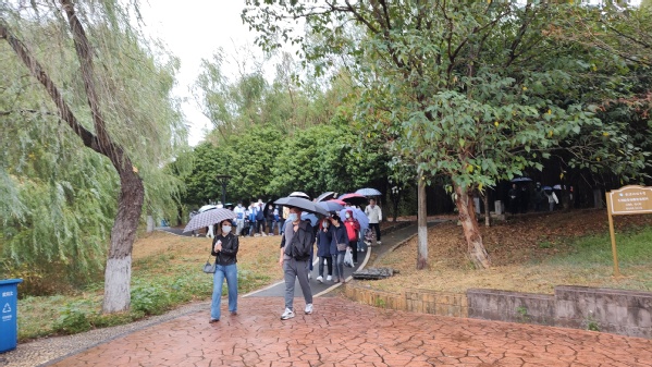 本次健步走活动自杏坛广场出发,绕行黄家湖内湖边道路一周,共设置三个打卡点,完成三次打卡,即可兑换纪念品。天阴沉沉且伴有小雨,寒风阵阵,但老师们依然兴致高昂。在行走过程中,教职工们欣赏沁湖风光,途中不乏欢声笑语。到达打卡点,老师们有序排队,一一进行打卡盖章。