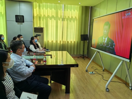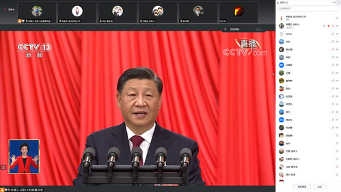 图3:“全国党建工作样板支部”武汉科技大学冶金教工党支部线上收看二十大开幕会