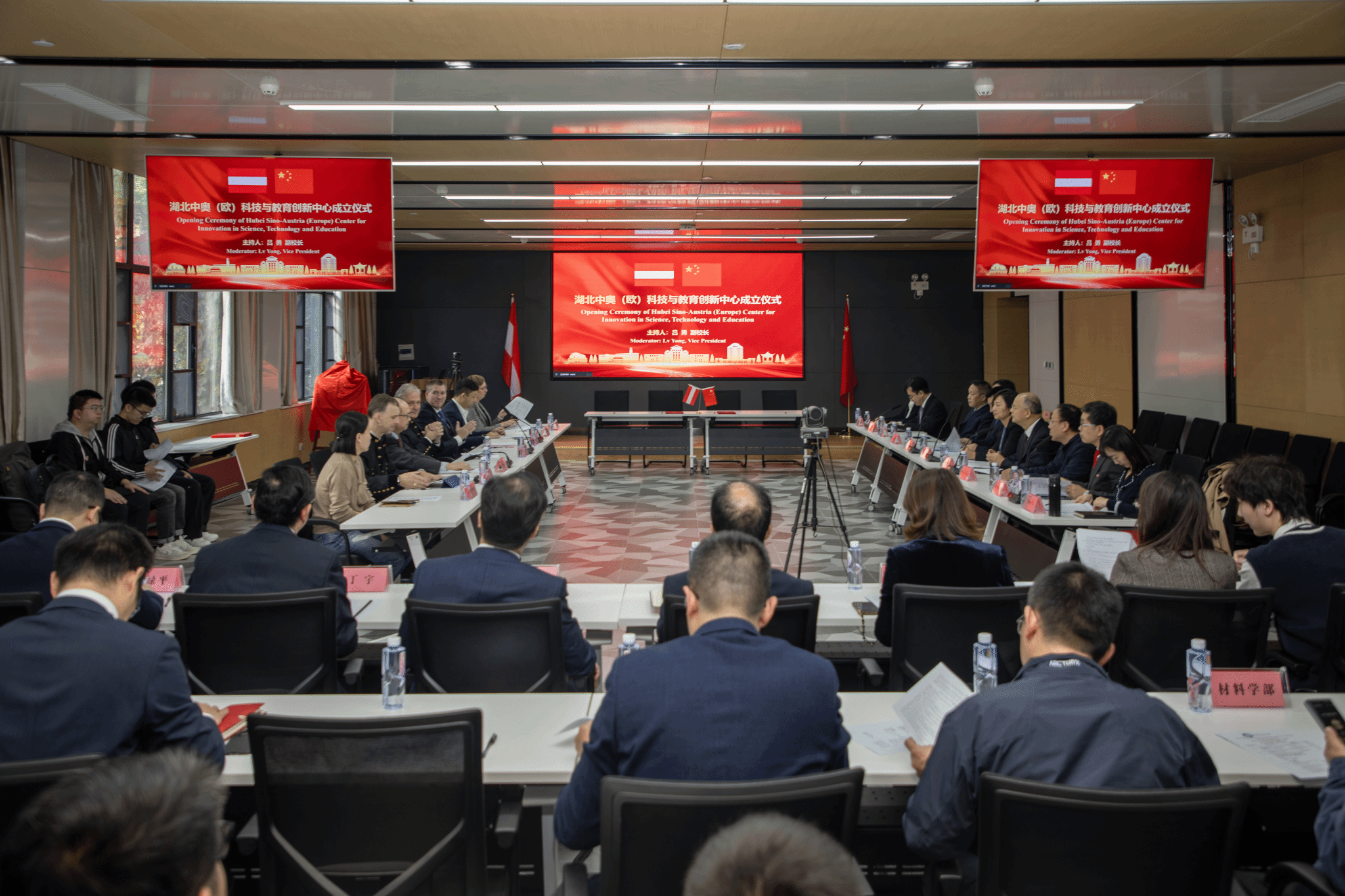 武科大网讯 11月7日上午,湖北中奥(欧)科技与教育创新中心成立仪式在我校青山校区图书馆路演厅举行。科技部国际合作司欧洲处副处长李刚、中国科学技术交流中心欧洲处处长宋娀线上参会。省教育厅副厅长周启红,省科技厅二级巡视员王东梅,奥地利莱奥本矿业大学校长Peter Moser、副校长Thomas Prohaska,K1-MET中心副总裁Gerold Huemer,校党委书记徐雁冰、校长倪红卫,中国驻奥大使馆前科技参赞雷风云等线下出席活动。成立仪式由副校长吕勇主持。