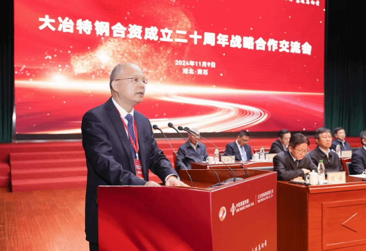 倪红卫代表学校向大冶特钢合资成立20年来取得的成就表示祝贺。倪红卫表示,武汉科技大学与大冶特钢同宗同源,都由清末湖广总督张之洞创办。长期以来,学校与大冶特钢在人才培养、科学研究、成果转化等领域开展了卓有成效的合作,双方相互信任、相互支持、相互帮助,结下了深厚的友谊。共同见证了大冶特钢近年来的飞速发展和取得的辉煌成就,港珠澳大桥、“天眼”FAST、C919“大飞机”、运-20“大运”等大国重器和超级工程,都有大冶特钢的贡献,希望大冶特钢能以合资成立20周年为契机,继往开来、乘势而上、发挥优势、再创佳绩。未来,武汉科技大学将与大冶特钢并肩携手,充分发挥学科、科研和人才优势,在平台共建、科研合作、研究生联合培养等方面持续深化合作,共谋发展、共谱新篇,助推大冶特钢实现更高水平的跨越式发展。