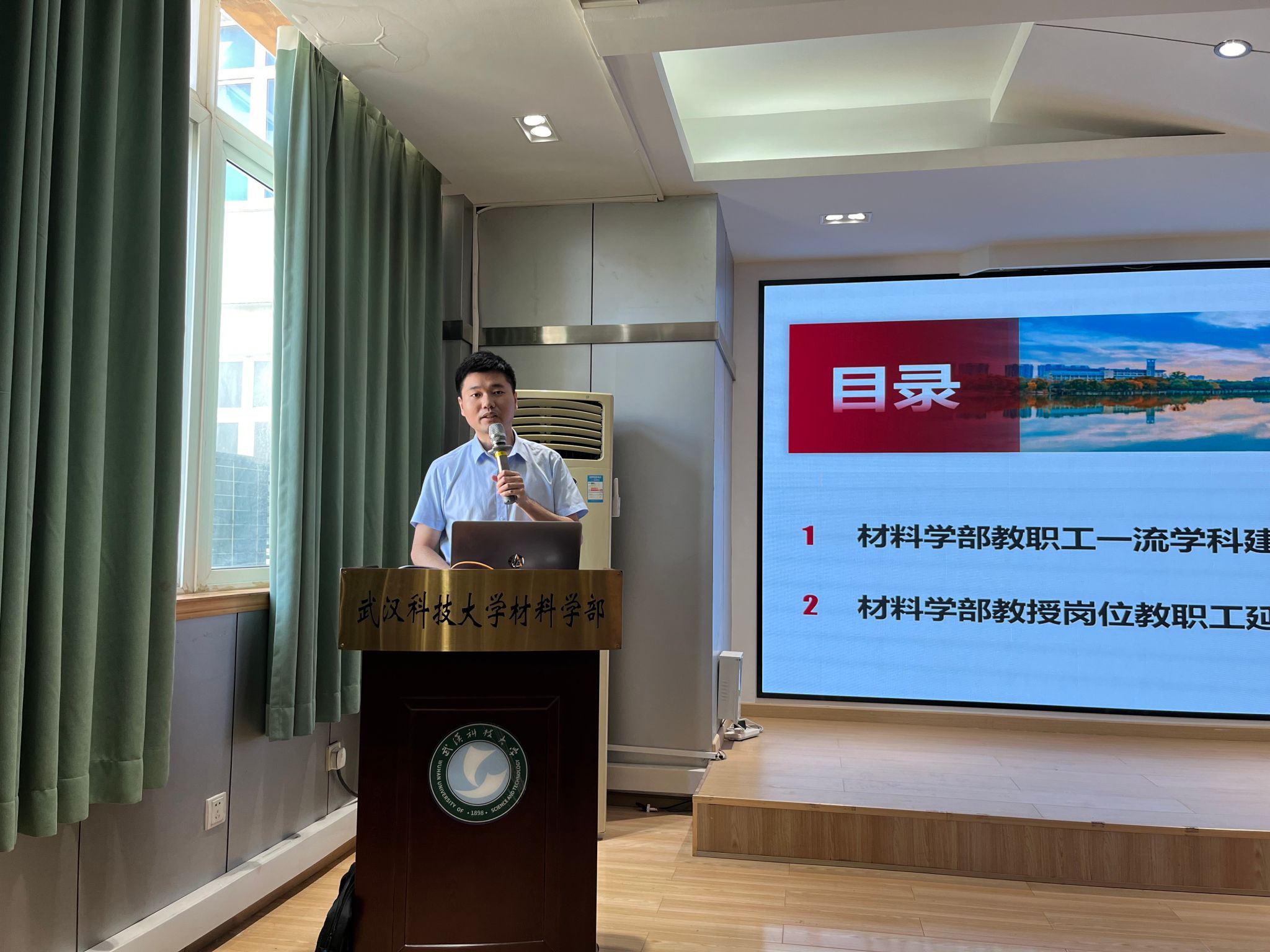 学部副主任韩兵强、杨庚蔚分别作教学情况工作报告、学科建设与科研工作情况报告。学部副主任张施琦解读《材料学部教职工一流学科建设任务目标实施细则(审议稿)》《材料学部教授岗位教职工延退、返聘工作办法(暂行)》等有关政策。