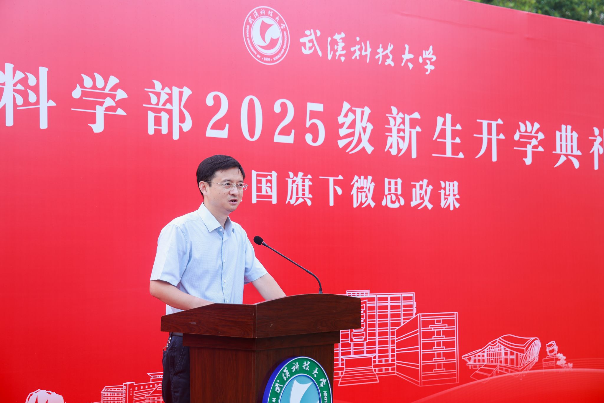 随后,学部执行主任李享成致辞,他首先代表学部向新生表示欢迎和祝贺。他回顾了学校自1898年以来的办学传统和材料学部自1958年开展本科教育的发展历程,结合金胜利教授、赵鹏达校友等师生典型事例,李享成从笃学不倦,以勤字为径筑专业根基;砥砺前行,以实践为炉锻钢筋铁骨;胸怀家国,以律为帆担时代之责三个方面对新生提出殷切期望。