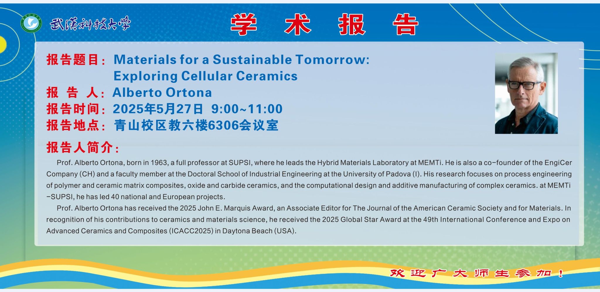 报告题目:Materials for a Sustainable Tomorrow: Exploring Cellular Ceramics