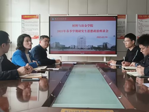武科大网讯(通讯员:胡千)3月10日中午,我院2023年春季学期研究生思想政治座谈会在青山校区教六楼6513会议室顺利召开。院党委副书记林莉,副院长付绿平,17名2022级硕士新生代表参加座谈,院研究生辅导员邵鲁凌主持会议。座谈会围绕科研素养提升过程中的困惑主题,分为新生代表提问、科研经验分享和自由交流三个环节开展。