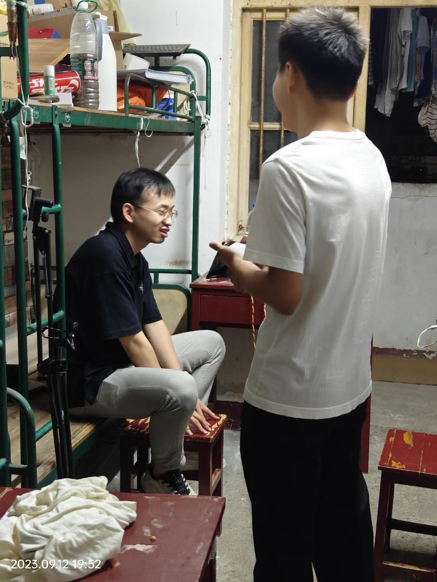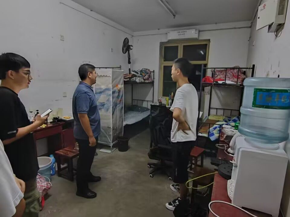 晚上7点,迎新报道工作迎来了尾声。为确保所有学生安全入住,了解学生在校适应情况、住宿需求,邵鲁凌和聂斌组织材料学部研究生会成员前往新生宿舍看望学生。聂斌热情地与新生沟通,亲切慰问新生,与同学们畅谈未来研究生三年的生活,询问是否在生活上有不便之处,并详细地记录下同学们的诉求。聂斌语重心长地说道:“寝室就像是一个大家庭,你们要和睦相处,互相关照、体贴、宽容、友善,共同维护这个大家庭的和谐与温馨。”