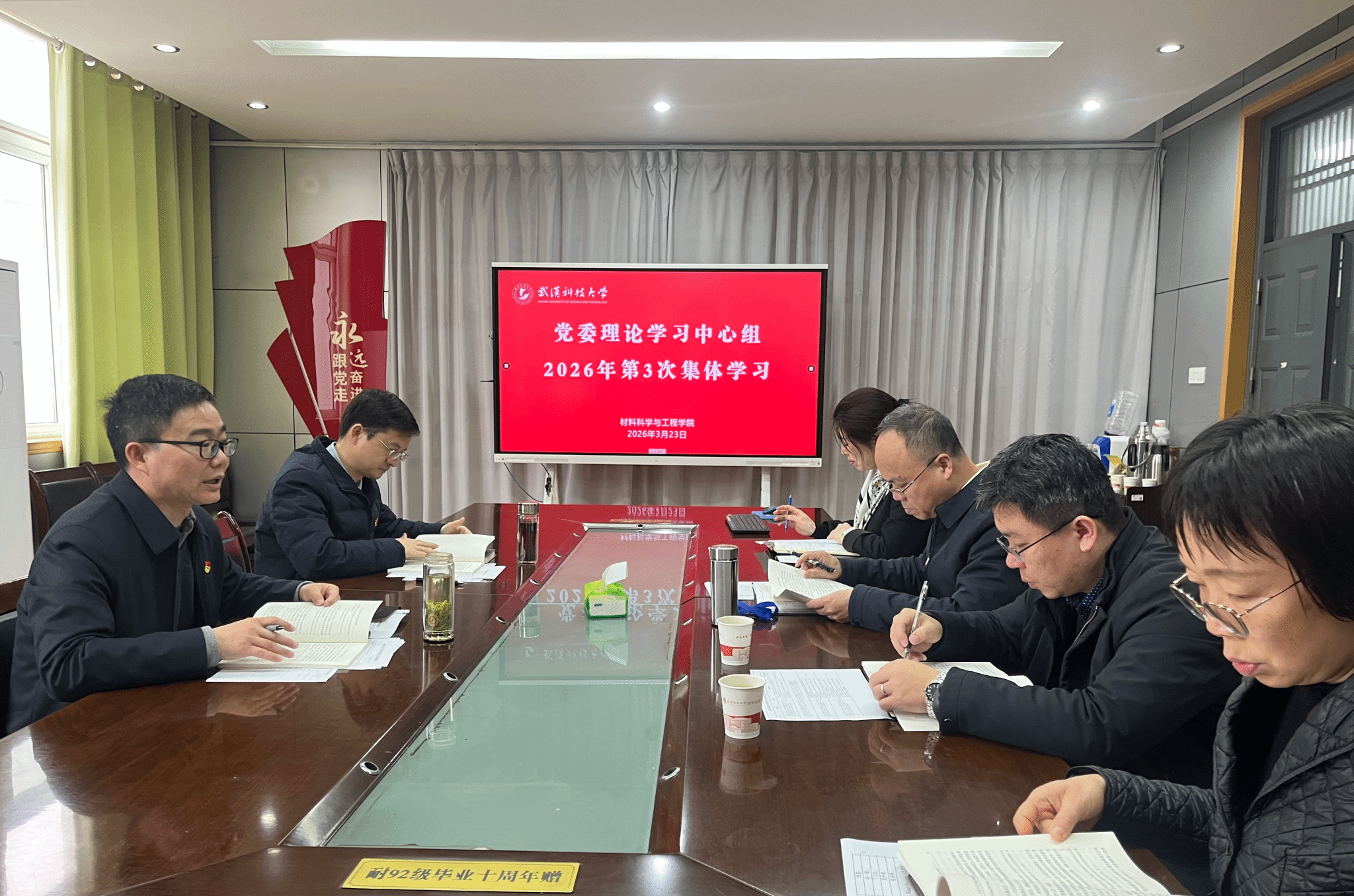 本次学习以“全力冲刺一流学科突破 助力湖北决胜支点建设”为主题,集中领学了习近平总书记在2月27日中共中央政治局会议上的重要讲话精神、习近平总书记对国家自然科学基金委员会工作作出的重要指示精神,以及习近平总书记重要文章《让愿担当、敢担当、善担当蔚然成风》《当前经济工作的重点任务》,同时专题学习了关于在全党开展树立和践行正确政绩观学习教育的通知和全国两会精神,其余相关内容以自学形式完成。领导班子成员结合各自分管工作开展深度交流研讨,锚定发展目标,明确攻坚方向。